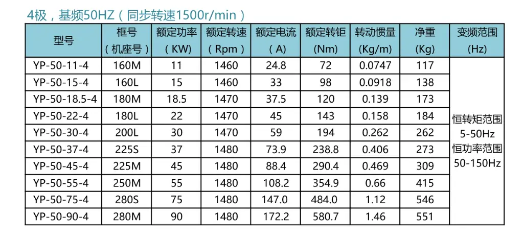 YP變頻系列4極型號(hào)