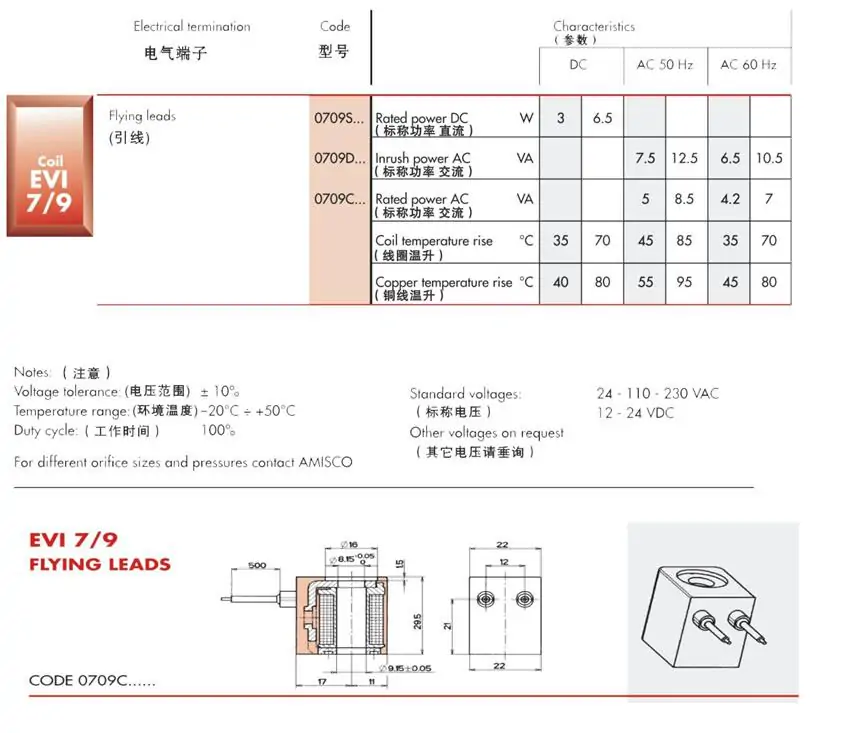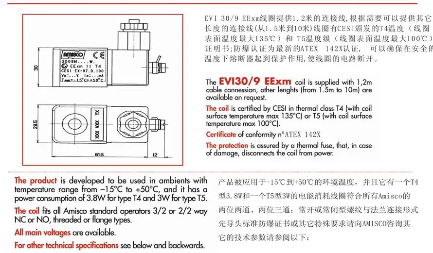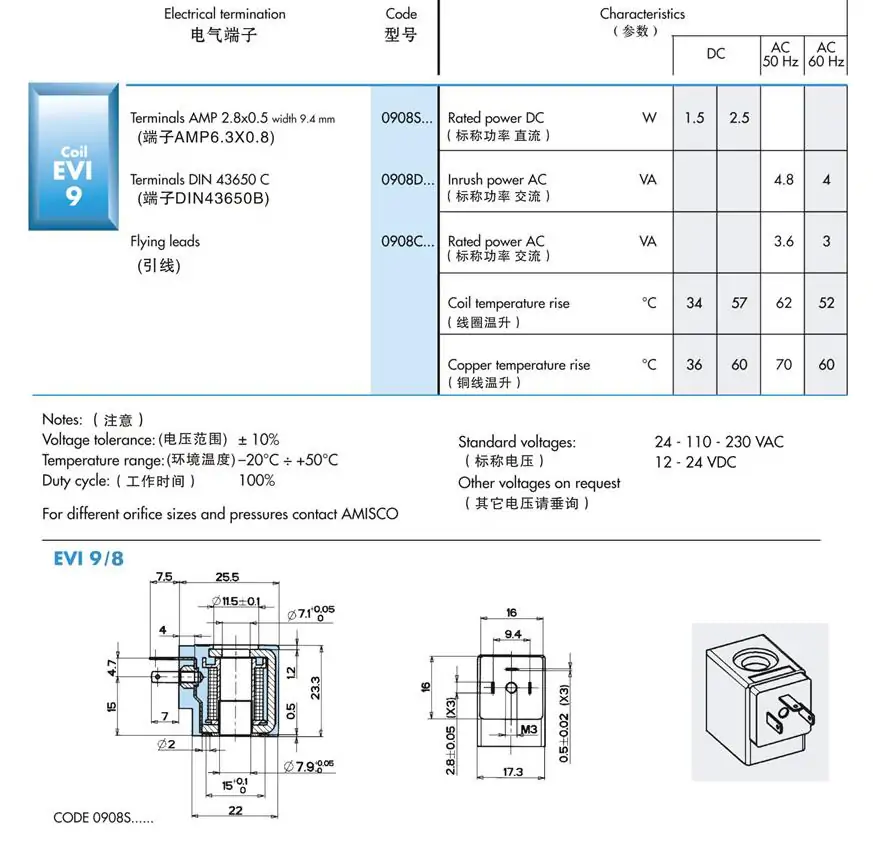 阿米斯科AMISCO電磁閥線圈EVI7/9 AC220V DC24V 6VA 5VA 3W 4.8W