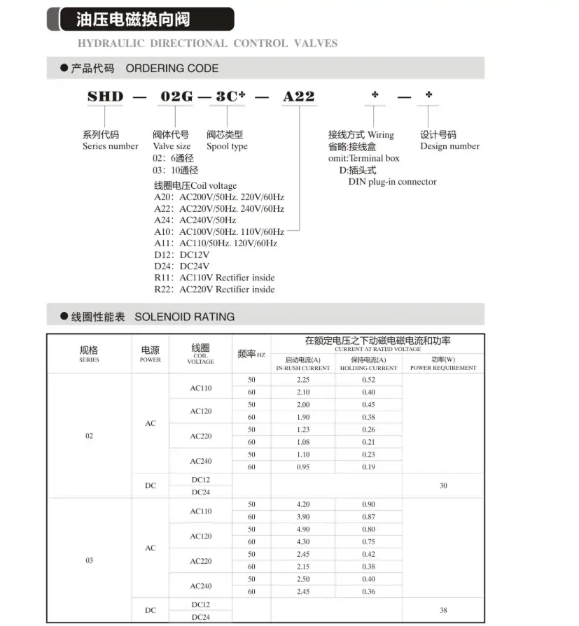 - D2:閥芯機能(鋼珠定位、中位 O 型、雙向換向)